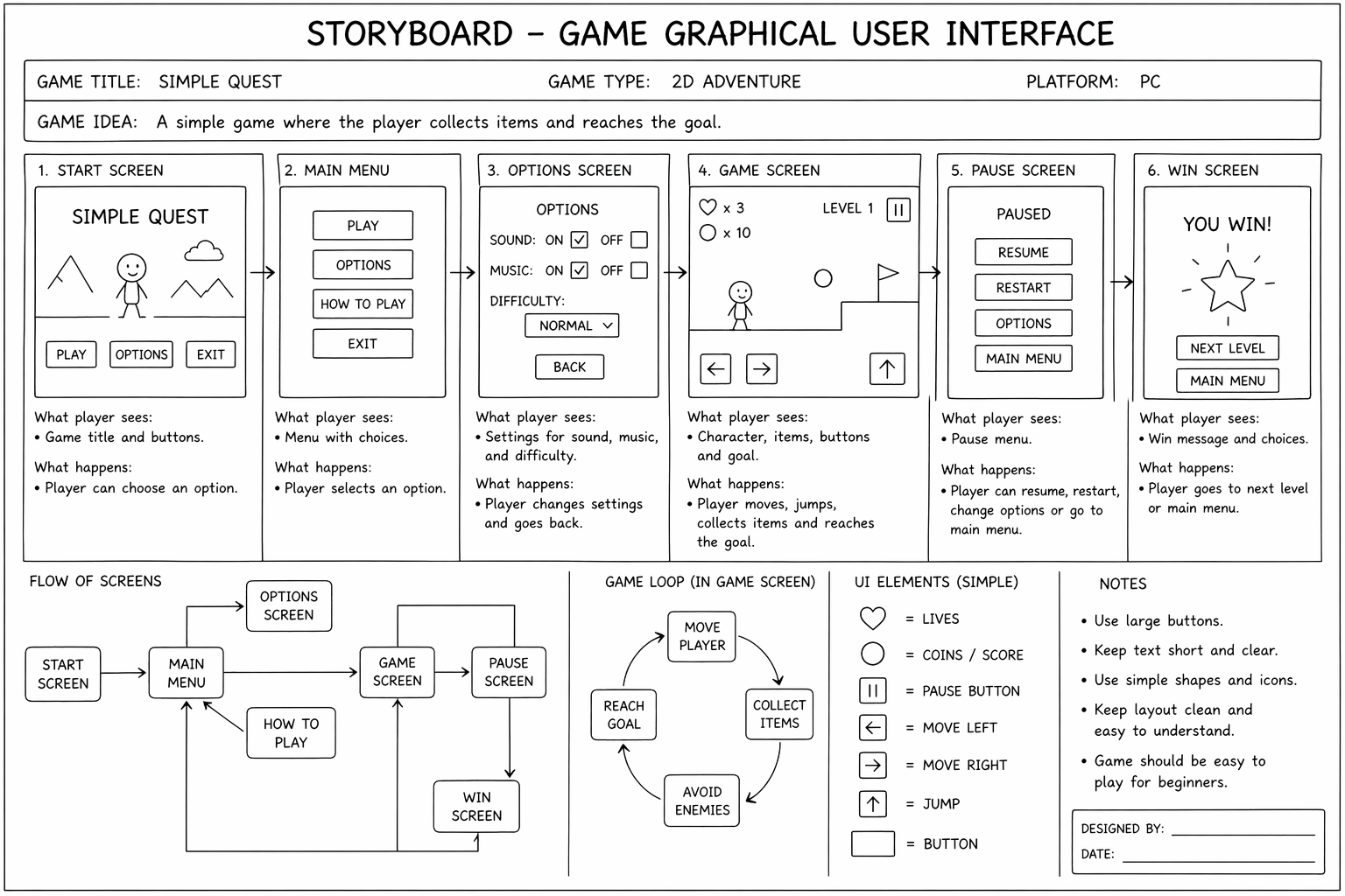Dive into the intricate world of game GUI design. These storyboards illustrate the creative process, from initial concepts to final interactive elements, showcasing the hard work and thought put into user experience and visual appeal.